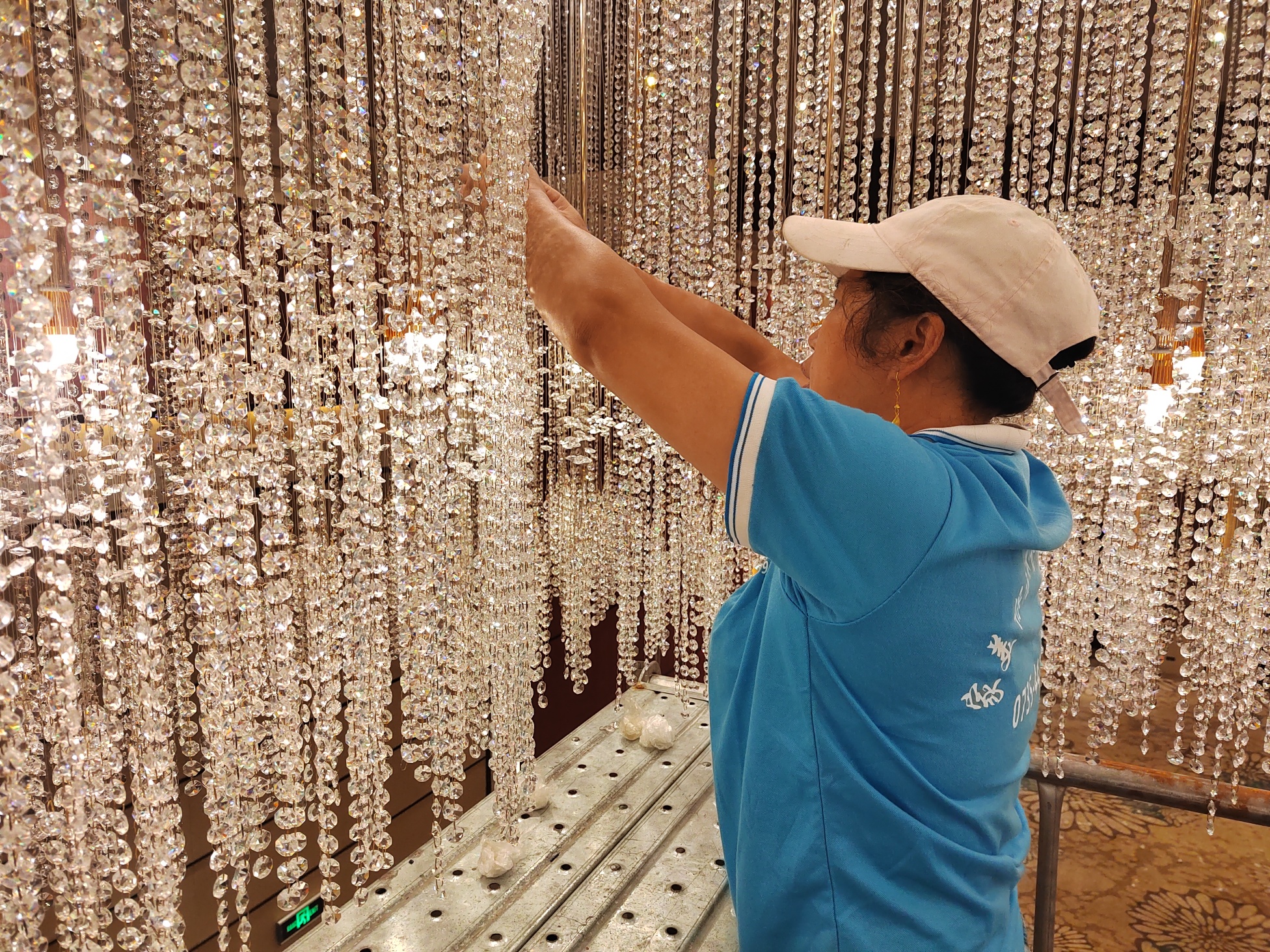 从签约进场到竣工验收,我们仅用了8天时间,高效完成了29盏水晶灯的全面清洗与防护网加装工作,最大程度减少了对酒店正常运营的影响。