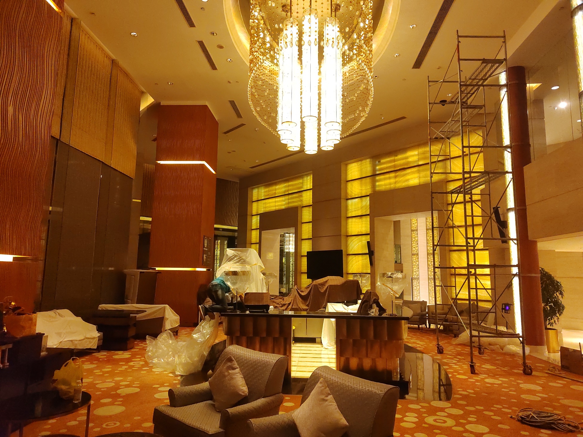 历时4天,深度挑战长沙喜来登酒店8盏“沉睡”20年的水晶灯!尤其大堂区域,积尘厚重、结构复杂,我们迎难而上: