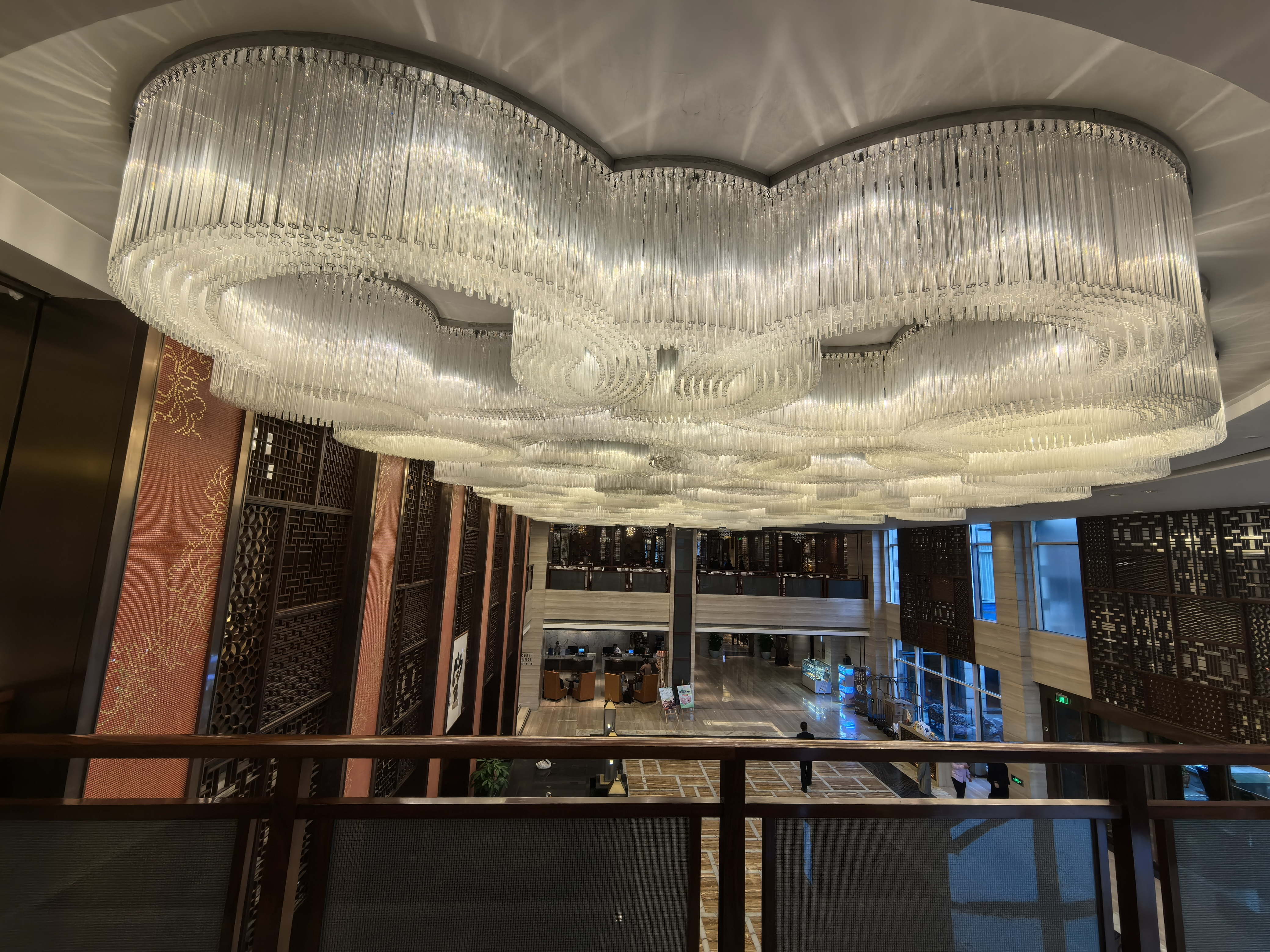 江苏无锡五星酒店大型水晶灯清洗挑战完成!30米巨型水晶灯,直逼10米高度!原定6天的清洗工程,我们带着20年实操经验,只用2天就让它重焕光彩!